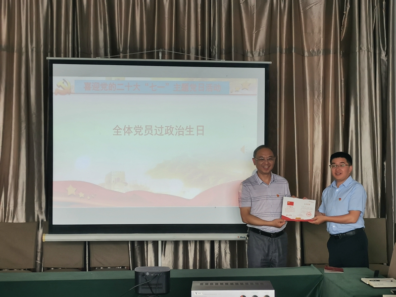 恰逢黨的101周年生日,集團公司黨委書記王峰圍繞“什么是中國共產(chǎn)黨,中國共產(chǎn)黨干什么”為主題講授一堂精彩紛呈的黨課。公司黨委組織兩個支部黨員集體過“政治生日”,黨委班子成員為20名黨員送上記載每位黨員入黨日期的黨員政治生日賀卡并致以祝福。兩名黨員代表重溫入黨志愿書,回顧入黨初心,強化黨員意識,提醒大家時刻不能忘記自己的“第一身份”,積極踐行共產(chǎn)黨員的使命與擔當。