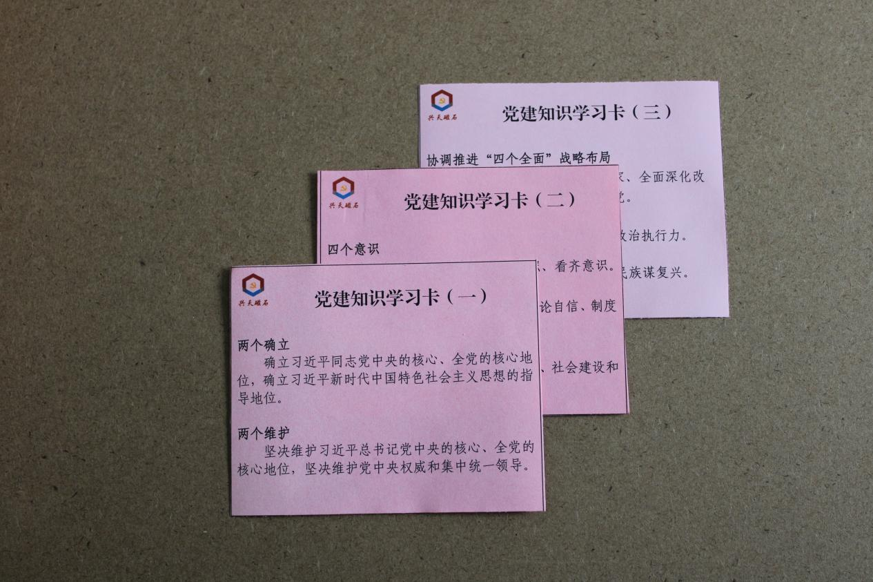 興天礦業(yè)黨支部對(duì)各類黨建名詞進(jìn)行收集整理制作成卡片,在每次周學(xué)習(xí)前進(jìn)行發(fā)放和學(xué)習(xí),以更直觀、更靈活的方式,幫助大家適時(shí)加強(qiáng)學(xué)習(xí)、領(lǐng)會(huì)實(shí)質(zhì),讓初心在不斷學(xué)習(xí)地過(guò)程中更加純粹,讓使命在不斷學(xué)習(xí)地過(guò)程中更加堅(jiān)定。