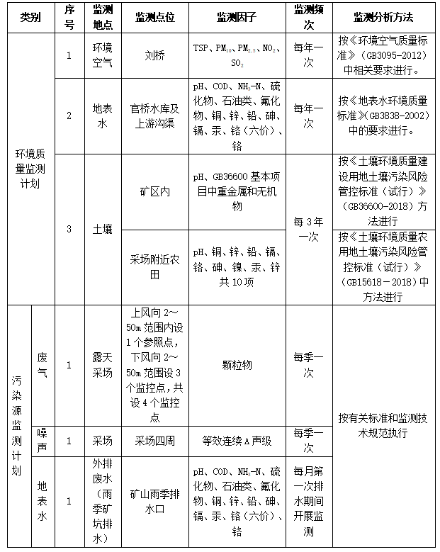 (6)招標(biāo)范圍及內(nèi)容:對興天礦業(yè)諭興礦進(jìn)行環(huán)境監(jiān)測和檢測,包括但不限于土壤、地下水、廢水、廢氣、噪聲等污染源進(jìn)行監(jiān)測和檢測,每季度出具監(jiān)測和檢測報(bào)告。監(jiān)測和檢測報(bào)告需滿足各級主管單位、國家法律法規(guī)、行業(yè)檢測標(biāo)準(zhǔn)、《滁州市興天礦業(yè)有限公司安徽省天長市諭興地區(qū)建筑用玄武巖礦年產(chǎn) 800 萬噸露天采礦項(xiàng)目環(huán)境影響報(bào)告表》中所涉及范圍等要求,保證審批順利通過。