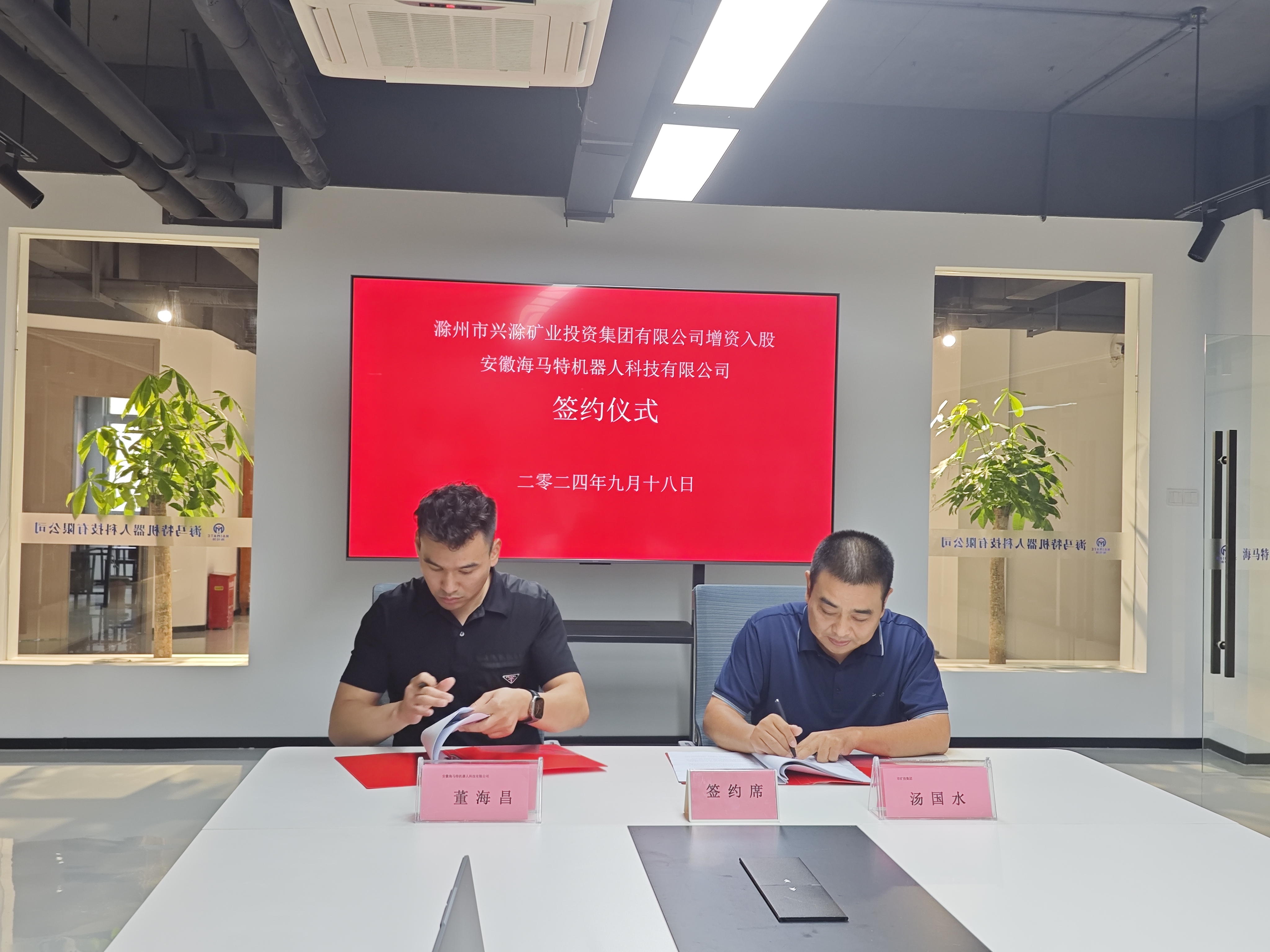 9月18日下午,市礦投集團(tuán)增資入股安徽海馬特機(jī)器人科技有限公司簽約儀式在天長市舉行。市礦投集團(tuán)黨委委員、副總經(jīng)理湯國水出席簽約儀式并講話,天長市科技局、滁州市創(chuàng)新驅(qū)動發(fā)展研究院、中國科學(xué)技術(shù)大學(xué)火災(zāi)科學(xué)國家重點(diǎn)實驗室等相關(guān)部門負(fù)責(zé)人參加本次簽約儀式。