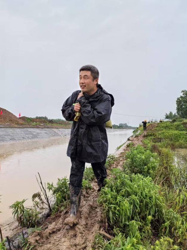 搶險現(xiàn)場,黨員干部帶頭扛起沙袋,跳入泥水中加固堤壩。由于河道水位上漲較快,突擊隊員手持鐵鍬開挖臨時導(dǎo)流渠,將洪水安全引入下游官橋水庫。晝夜風雨里泥水滿身,抗洪搶險中責任在肩,沙袋和鐵鍬磨破了隊員們的雙手,卻磨不滅他們的意志,經(jīng)過兩天連續(xù)作戰(zhàn),最終成功排除險情。